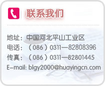 公司地址:中國河北平山縣東回舍鎮(zhèn)北望樓村東 電話:(086)0311-82808396 傳真:(086)0311—82801445 E-mail: blgy2000@huayingcn.com